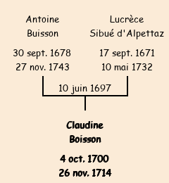 Mère : Lucrèce Sibué d'Alpettaz | Marraine : Claudine Boisson (fille de Claude décédé) |