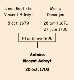 | Antoine Vincent Adreyt apparait dans la consigne des mâles de 1713. |