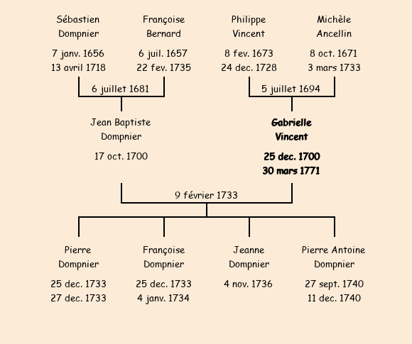 | Gabrielle Vincent apparait dans le recensement de la population de 1716. |