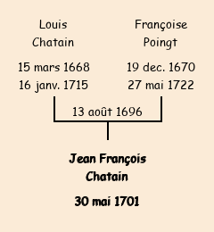 | Jean François Chatain apparait dans le recensement de la population de 1716. |