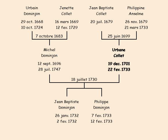 Epouse : Urbaine Gilbert Collet, fille de Jean Baptiste |