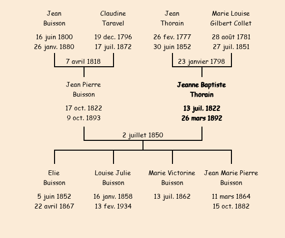 Epouse : Jeanne Baptiste Thorain (28 ans, a marqué), fille de Jean (a signé) et de Marie Louise Gilbert Collet |