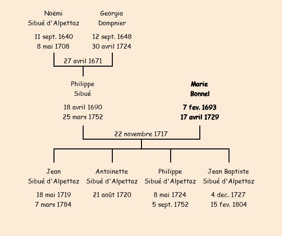 Epoux : Philippe Sibué d'Alpettaz, fils de feu Noë |