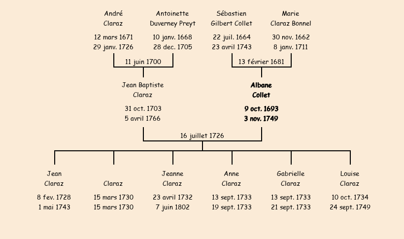 Albane Collet apparait dans le recensement de la population de 1716. |