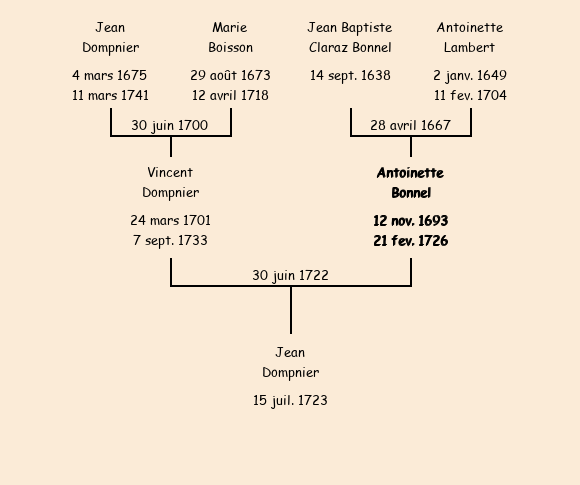 Mariée (28 ans) avec Vincent Dompnier (21 ans) le 30 juin 1722 à Fontcouverte ![]() |