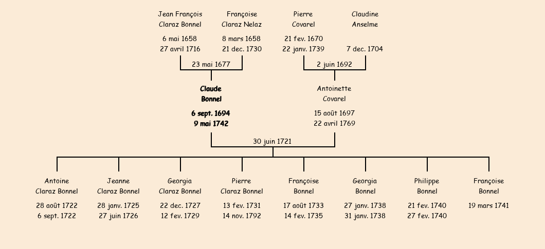 | Jean François Claraz Bonnel (°1658 +1716) - 36 ans |