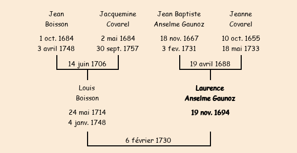 | Laurence Anselme Gaunoz apparait dans le recensement de la population de 1716. |
