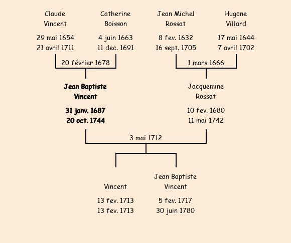 Jean Baptiste Vincent apparait dans la consigne des mâles de 1713. |