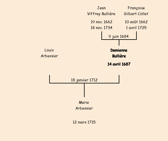 Mariée (24 ans) avec Louis Arbessier le 18 janvier 1712 à Hermillon ![]() |