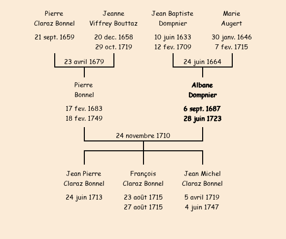 Albane Dompnier apparait dans le recensement de la population de 1716. |