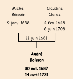 André Boisson apparait dans la consigne des mâles de 1713 (absent). |