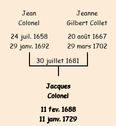Jacques Colonel apparait dans la consigne des mâles de 1713. |