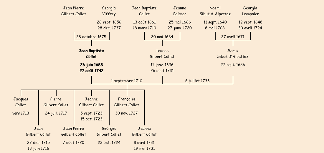| Jean Baptiste Collet apparait dans le recensement de la population de 1716. |