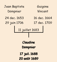 Mère : Hugone Vincent | Marraine : Claudine Dompnier (fille de Jean Baptiste) |
