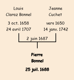 Pierre Bonnel apparait dans la consigne des mâles de 1713 (absent). |