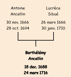 Barthélémy Ancellin apparait dans la consigne des mâles de 1713 (absent). |