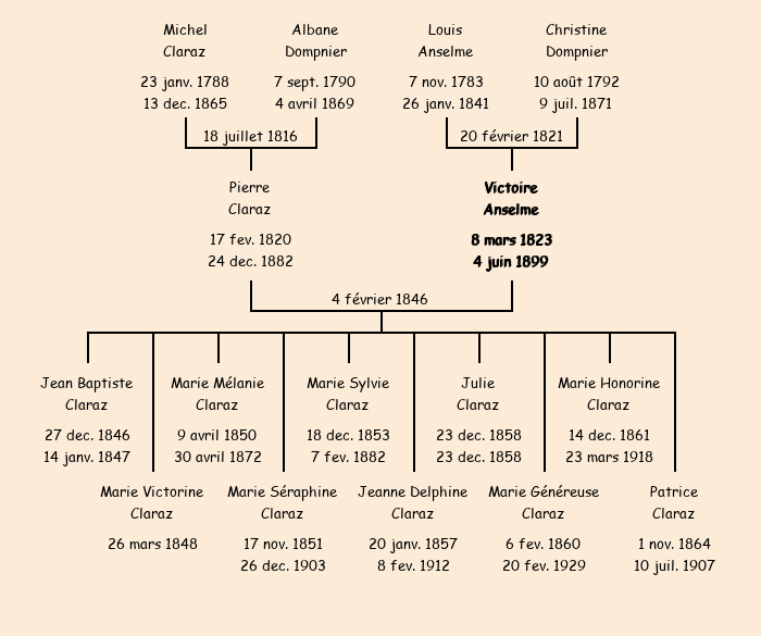 Victoire Anselme apparait dans le dénombrement de la population de 1876. |