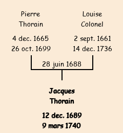 Père : Pierre Thorain, fils de Jacques | Parrain : Jacques Thorain (susdit) |