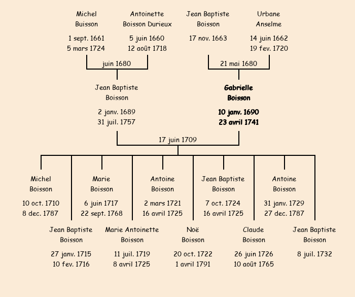 Gabrielle Boisson apparait dans le recensement de la population de 1716. |