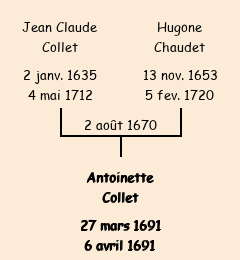 Mère : Hugone Chaudet | Marraine : Antoinette Chaudet (épouse de Jacques Collet) |