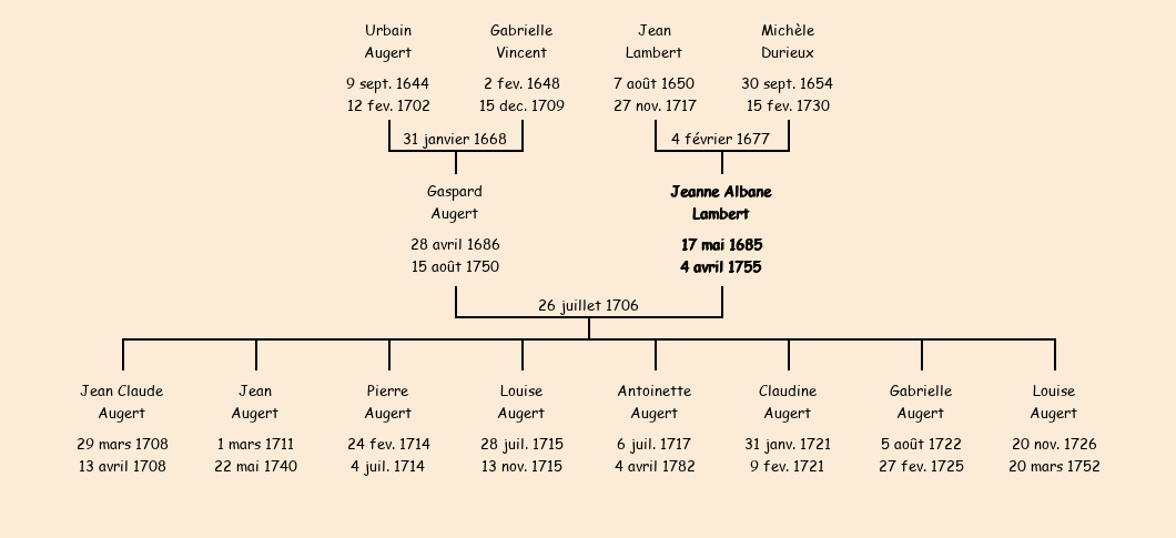 Mariée (21 ans) avec Gaspard Augert (20 ans) le 26 juillet 1706 à Fontcouverte ![]() |