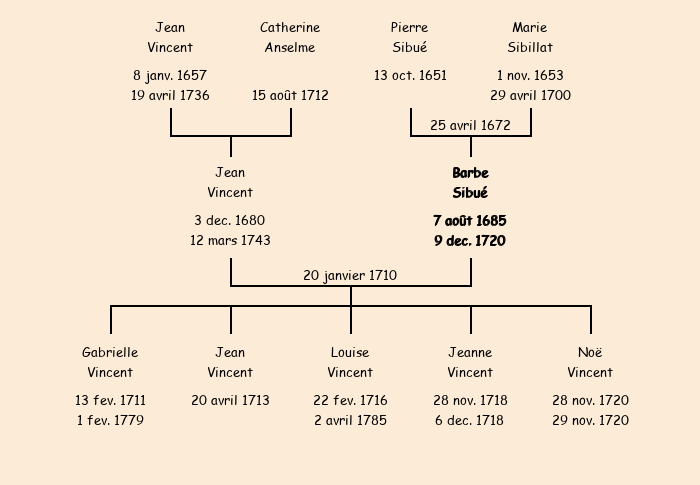 Mère : Marie Sibillat | Marraine : Barbe Sibué (fille de Barthélémy) |