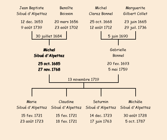| Michel Sibué d'Alpettaz apparait dans la consigne des habitants de Fontcouverte pour l'année 1718. |