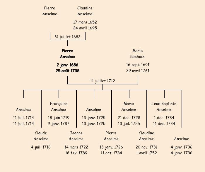 Pierre Anselme apparait dans la consigne des mâles de 1713. |