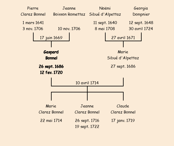 Pierre Claraz Bonnel (°1641 +1706) - 45 ans |