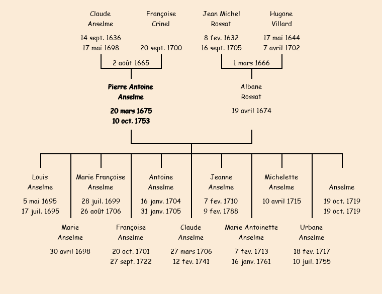 Pierre Antoine Anselme apparait dans la consigne des mâles de 1713. |