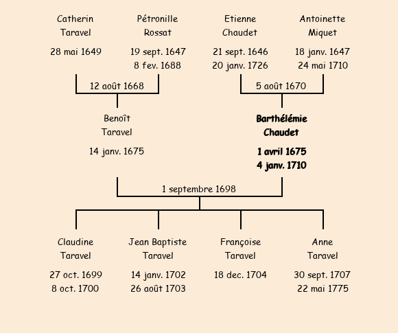 Mère : Antoinette Miquet | Marraine : Barthélémie Chaudet (fille de Pierre) |