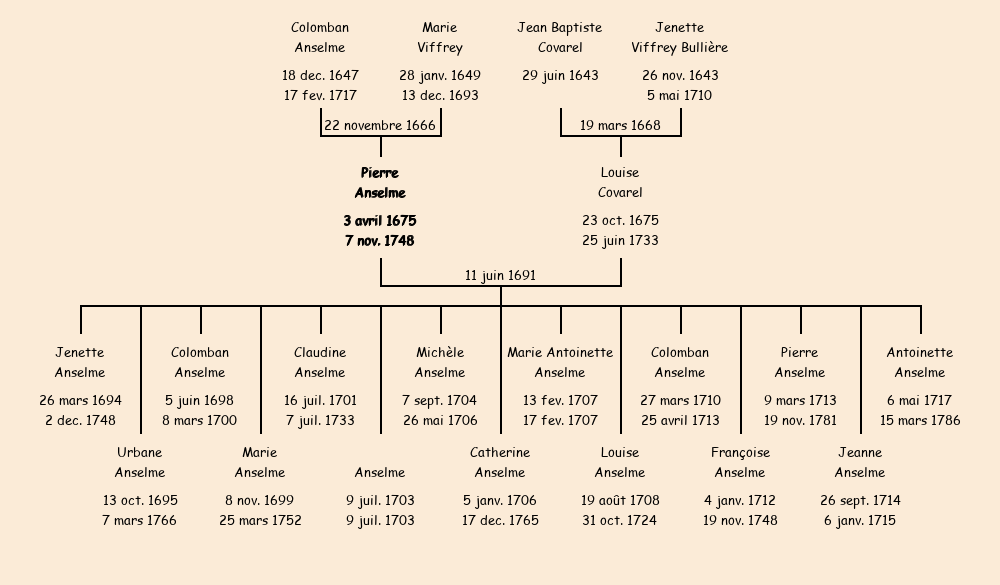 | Epoux : Pierre Anselme, fils de Colomban |