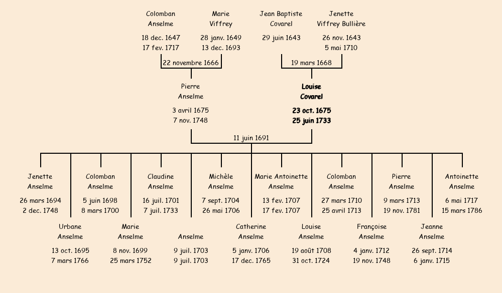 Epouse : Louise Covarel, fille de Jean Baptiste |