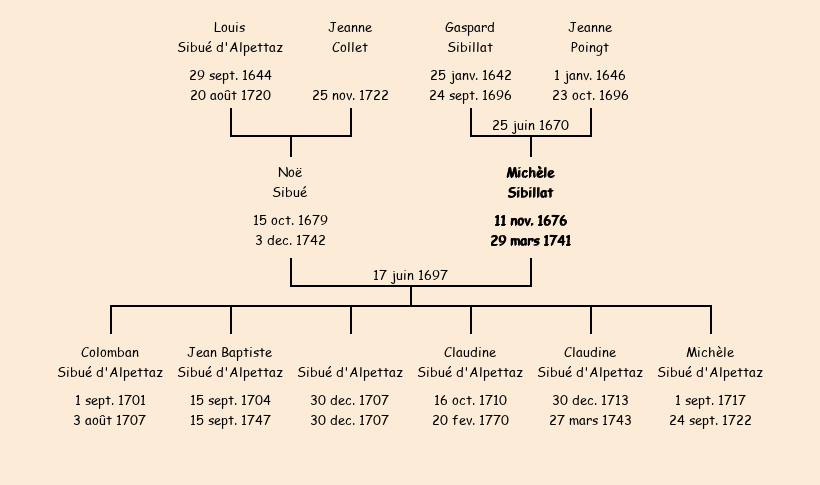 Michèle Sibillat apparait dans le recensement de la population de 1716. |