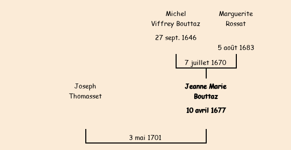 Mariée (24 ans) avec Joseph Thomasset le 3 mai 1701 à Saint-Martin-de-la-Porte ![]() |