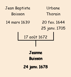 Mère : Urbaine Thorain | Marraine : Jeanne (épouse de Louis Buisson) |