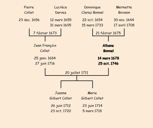 | Albane Bonnel apparait dans le recensement de la population de 1716. |