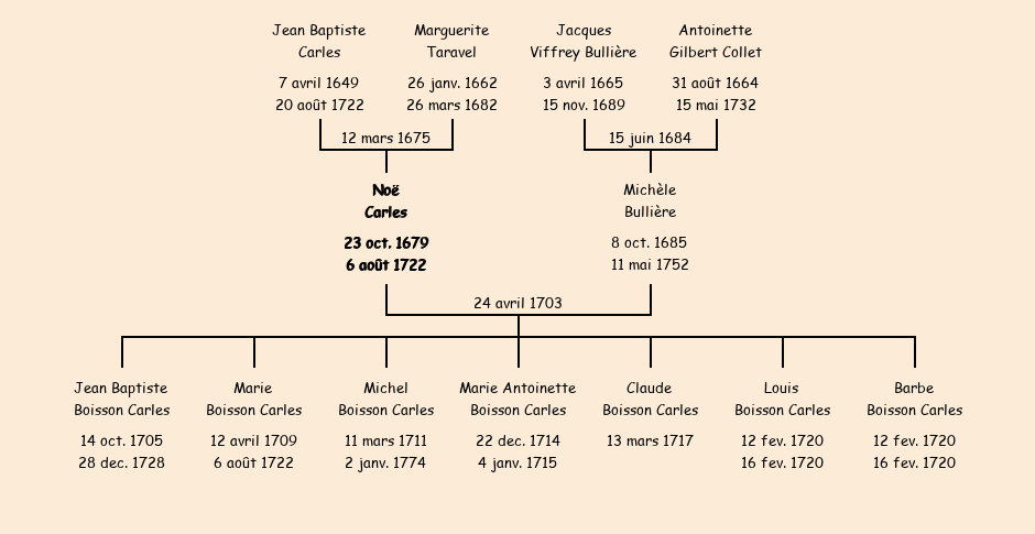 Noë Carles apparait dans le recensement de la population de 1716. |