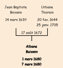 Mère : Albane Thorain | Marraine : Albane (veuve de Saturnin Buisson) |