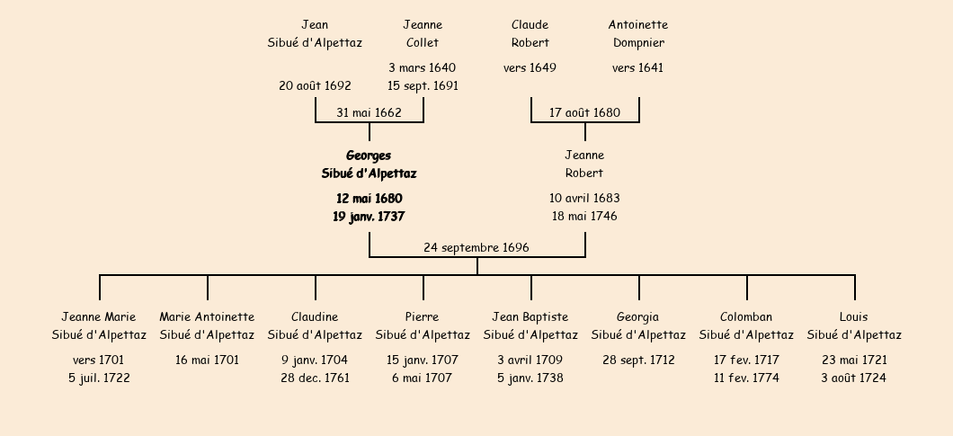 Georges Sibué d'Alpettaz apparait dans le recensement de la population de 1716. |