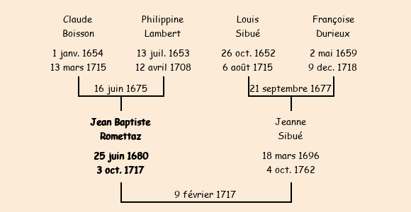| Père : Claude Romettaz | Parrain : Jean Sibué d'Alpettaz (fils de Saturnin) |