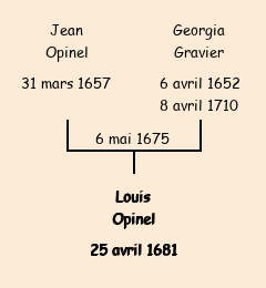 Louis Opinel apparait dans la consigne des mâles de 1713 (absent). |