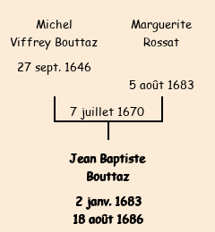Père : Michel Bouttaz | Parrain : Jean Baptiste Bernard (de Saint Jean de Maurienne) |
