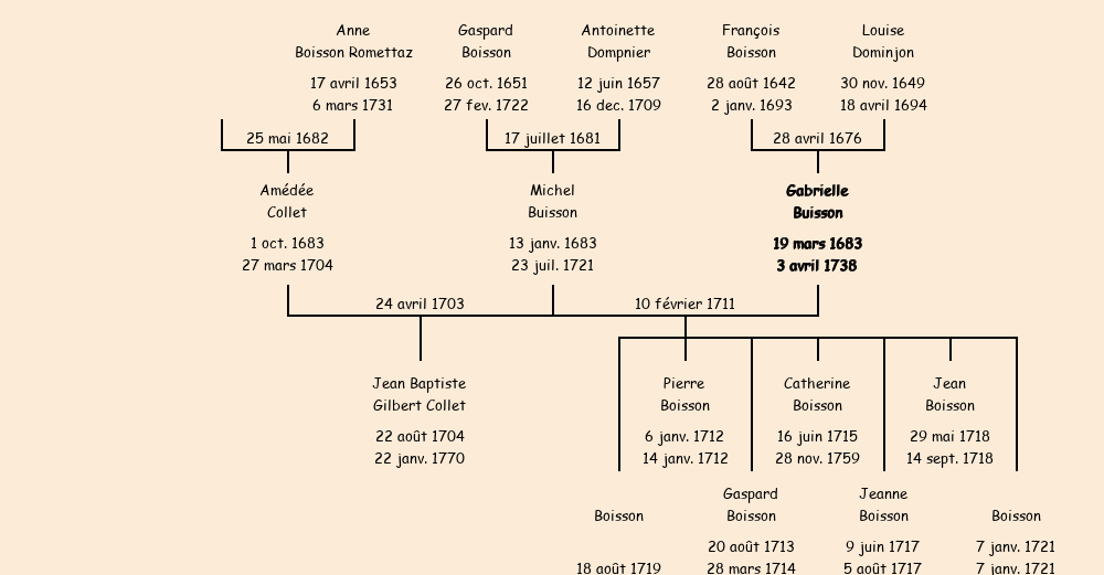 Epouse : Gabrielle Boisson (veuve d'Aimé Gilbert Collet), fille de feu François |