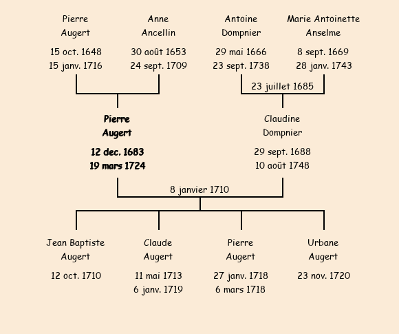 Pierre Augert apparait dans le recensement de la population de 1716. |
