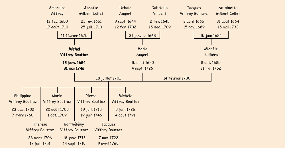 Epoux : Michel Viffrey Bouttaz (veuf de Marie Augert), fils de Ambroise |