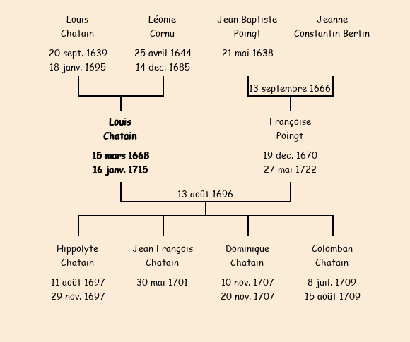 Louis Chatain apparait dans la consigne des mâles de 1713. |