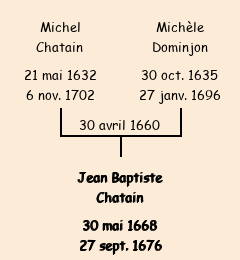 Père : Michel Chatain | Parrain : Jean Baptiste Vincent Adreyt (fils de Jean Baptiste) |
