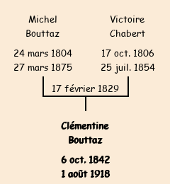 Mère : Victoire Chabert (ménagère) | Marraine : Clémentine Bouttaz (ménagère) |
