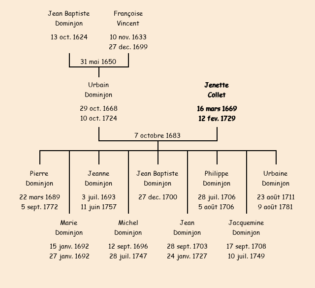 Jenette Collet apparait dans le recensement de la population de 1716. |